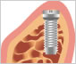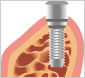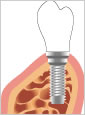 1回法の特徴は、外科手術が1度で済むことです。本来歯があった部位にインプラントを埋め込んだ後、インプラントの一部を顎の骨の外に露出させておきます(2回法と違い、歯肉を被せません)。その後の骨の結合期間を経て、露出させておいた部分にアバットメントを装着し、人工歯を被せます。